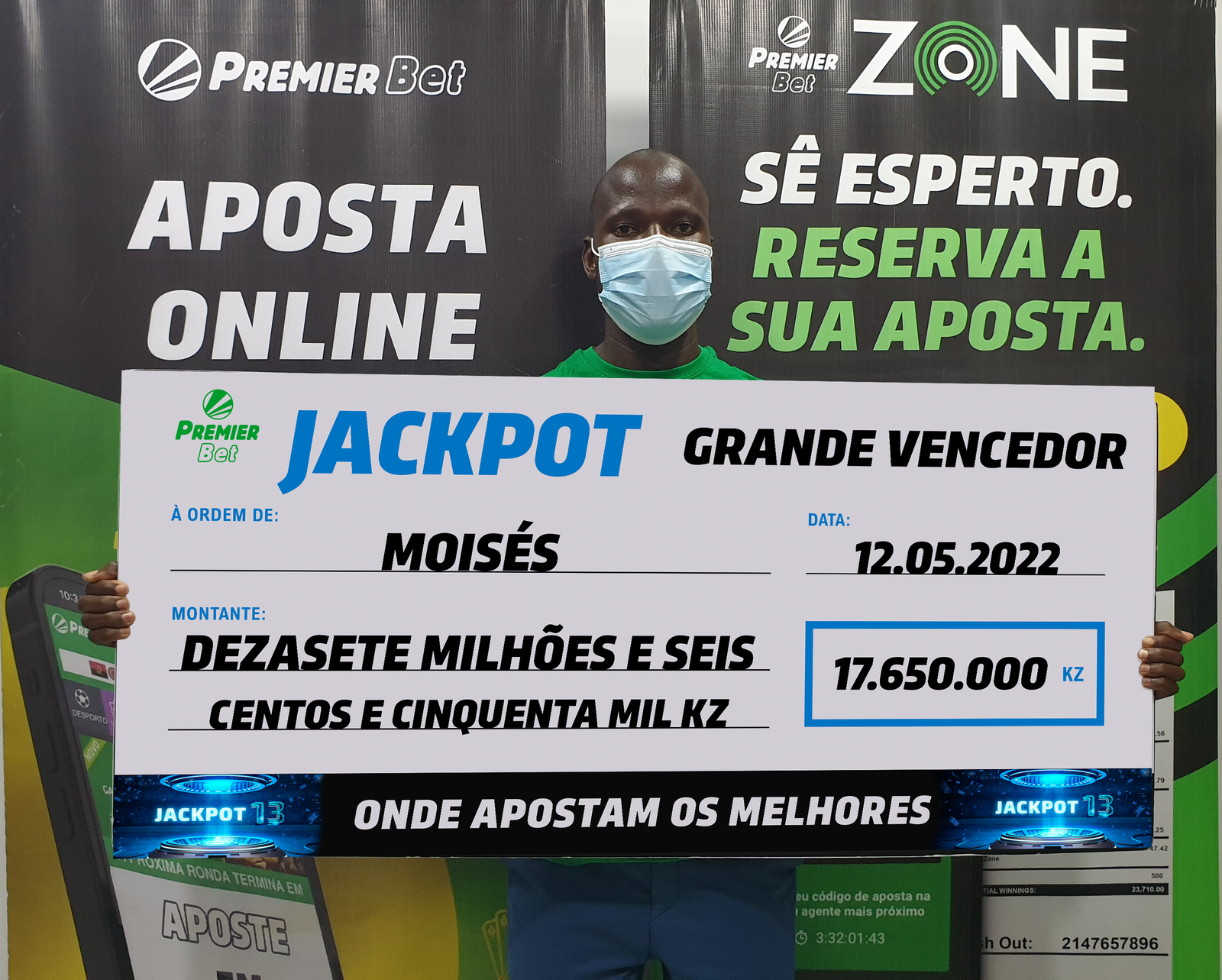 JOVEM GANHA 17,625,000 Kz no JACKPOT 13 da Premier Bet