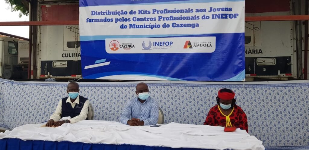 Os beneficiários, recém formados pelo INEFOP- CAZENGA- Instituto Nacional de Emprego e Formação Técnico Profissional, foram potencializados com kit’s de Eletricidade, Canalização, Corte e Costura, Carpintaria Serralheria, Soldadura, Cabelereiro e Pedreira.