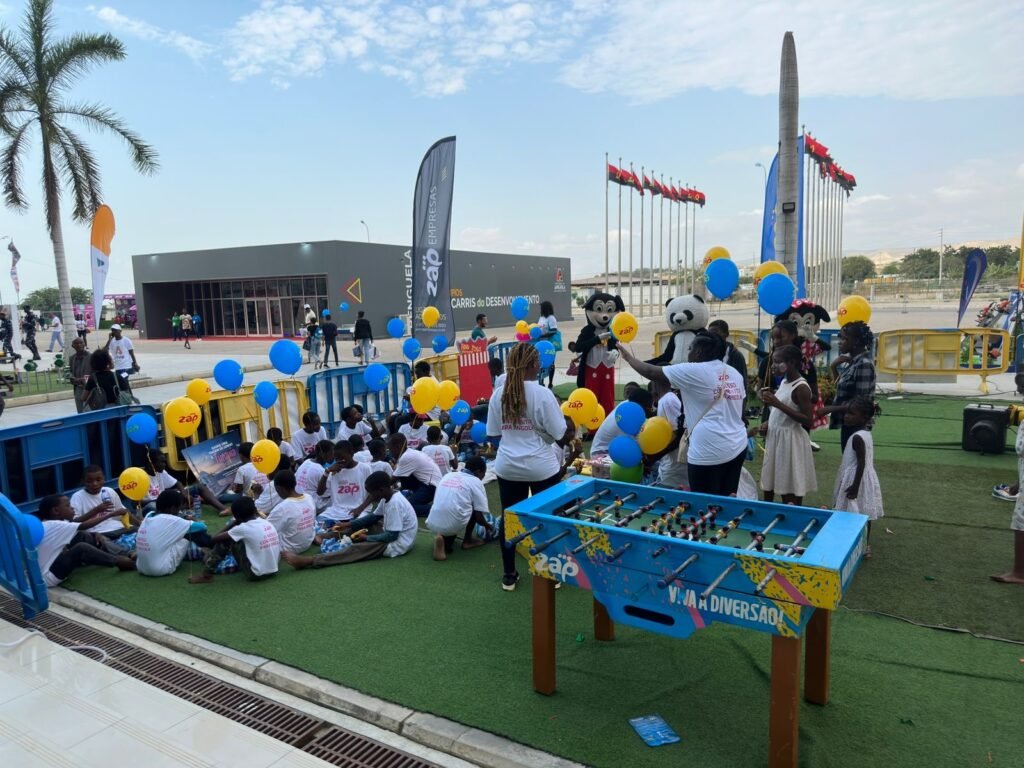 A diversão estava garantida, os meninos da Casa do Gaiato de Benguela passearam-se pelo recinto da FIB com balões com as cores da ZAP. Em fila indiana, esperavam ansiosamente chegar ao “pula-pula” gigante, matraquilhos e jogos de ringues que a empresa montou no exterior da feira, no Estádio Nacional de Ombaka.
