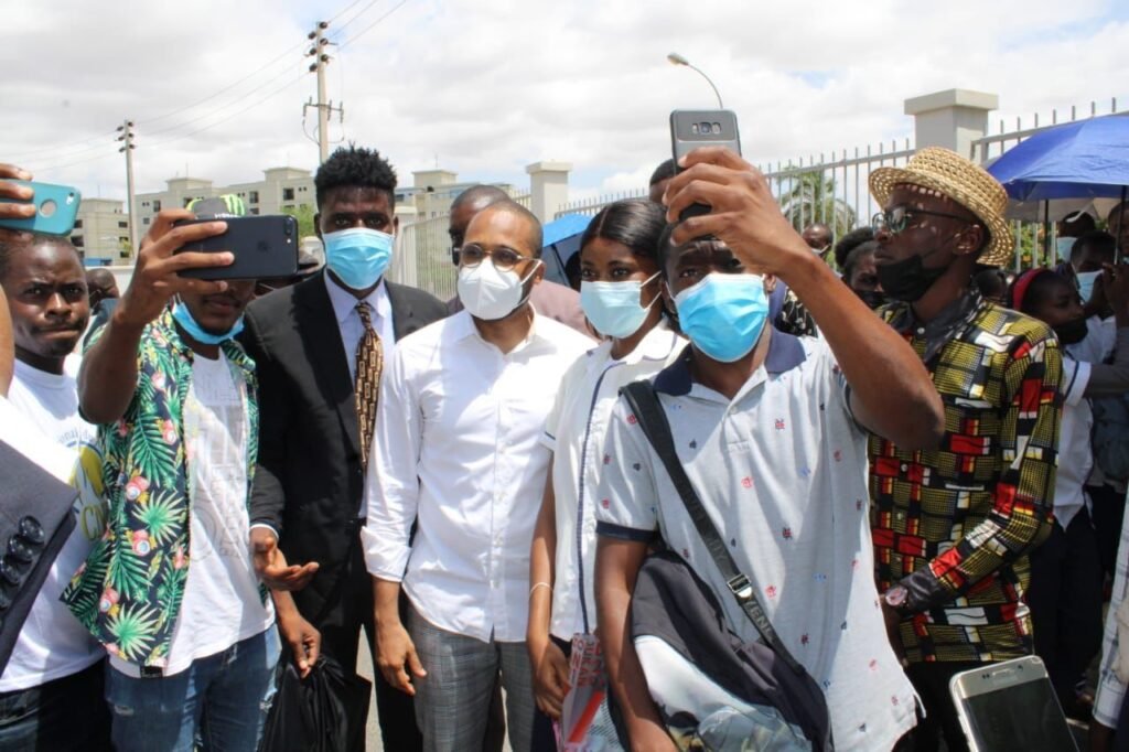 Ministro da Administração do Território Marcy Lopes posa em fotos com jovens de diferentes estratos sociais