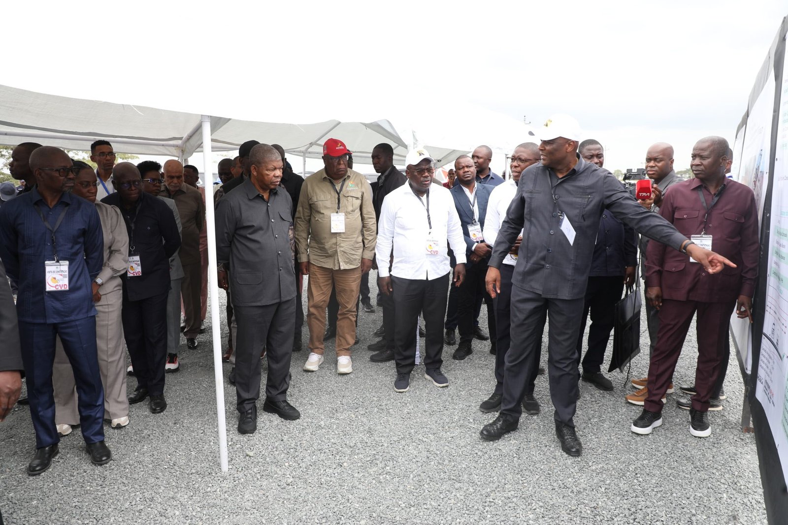 No local, o Presidente da República dirigiu-se a uma tenda montada para o efeito, onde recebeu esclarecimentos técnicos detalhados sobre o estado de execução dos trabalhos nos diferentes troços rodoviários, incluindo informações sobre prazos, fases já concluídas e desafios em curso.