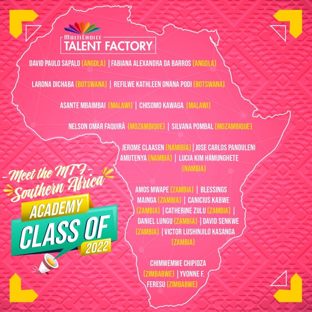 A MultiChoice Africa dá as boas-vindas à nova turma de jovens criativos, participantes do projecto MultiChoice Talent Factory Turma 2022, nas Academias de Nairobi, Lagos e Lusaca. Após um exaustivo processo de selecção de 6 semanas em 13 países africanos, 60 aspirantes a cineastas iniciarão em Outubro deste ano, o seu programa de formação de 12 meses. Os candidatos foram seleccionados após um rigoroso processo de entrevistas feito por especialistas em cinema e televisão, bem como pelos Directores Regionais das Academias.